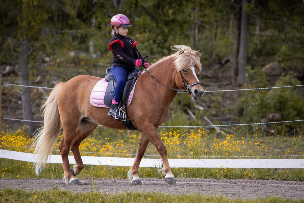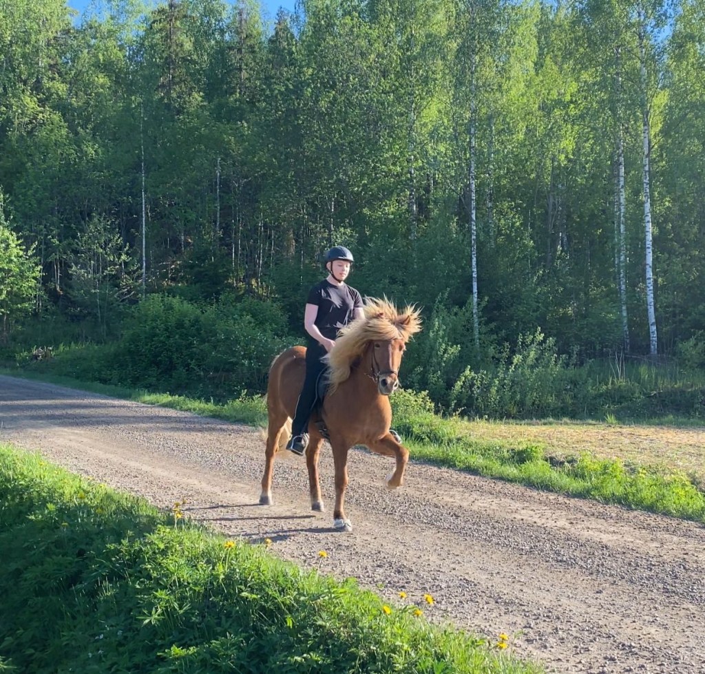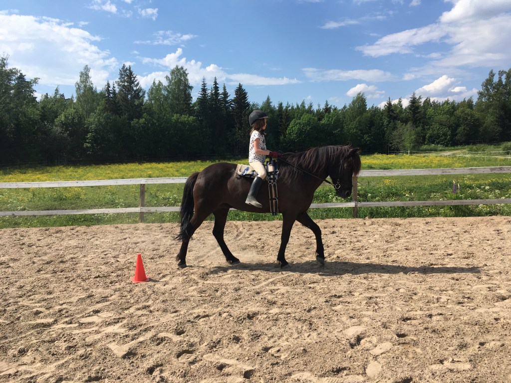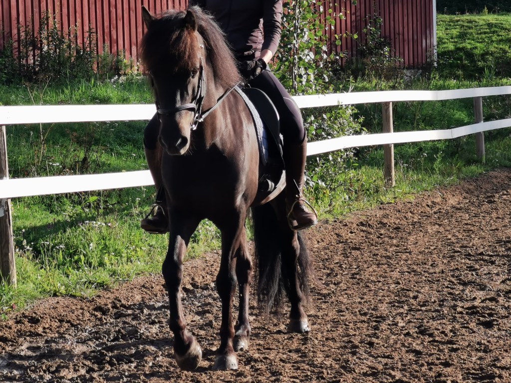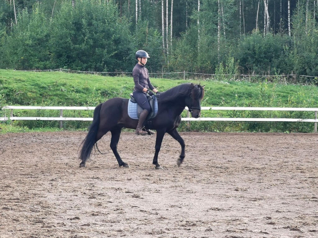 Freyja on reipas pikkuinen tamma hyvillä perusaskellajeilla. Puhdas töltti on meidän opetushevosista vaikeinta Freyjalle, ja se onkin helposti passitahtista ja vaatii ratsastajalta jo todella paljon apuja hyvän tahdin saavuttamiseen. Tasapaino on vielä hieman ailahteleva, joten ratsastajan tehtäväksi jää auttaa ja tasapainottaa pikkuista tammaa. Ravi on isoa ja lennokasta, hyvä ja vauhdikas laukka sekä ihan hyvä passikin löytyy. Rehellinen ja yritteliäs tamma, jossa riittää menoa ja meininkiä kokeneille ratsastajille. Maastoilla mukana kokeneiden kanssa.