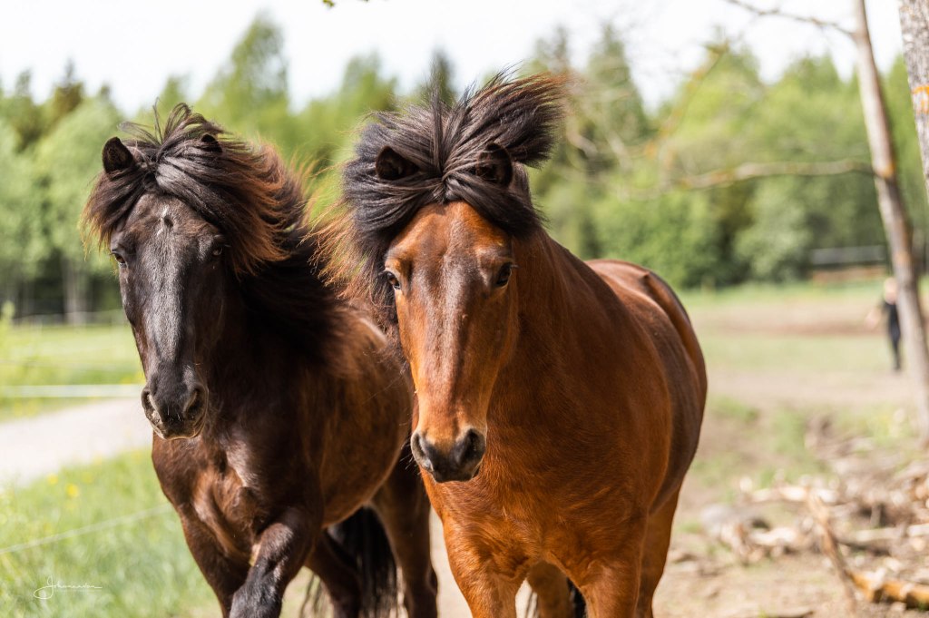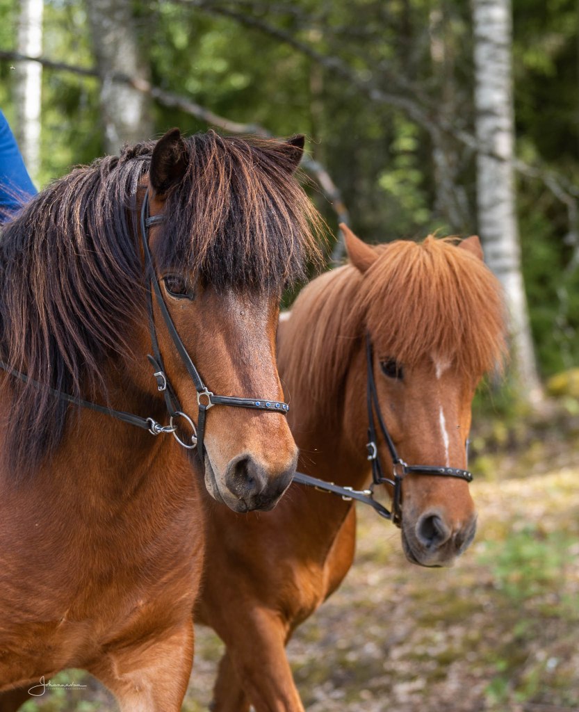 Tallilla asuu noin kolmekymmentä islanninhevosta, opetushevosia, yksityishevosia, nuoria hevosia ja muutama siitoskäytössä oleva tamma sekä yksi 1-palkinnon jalostusori. Tuntikäytössä meillä on tällä hetkellä 8 hevosta. Kaikki tuntikäytössä olevat hevoset ovat meille tarkkaan valittuja hyväluonteisia ja hyvillä askellajeilla olevia puhtaita islanninhevosia. Lähes kaikilla meidän tuntihevosilla on hyvä ja puhdas töltti sekä osalla myös hyvä passi. Hevoset läpiratsastetaan säännöllisesti ja pidetään huolta, että ne pystyvät suoriutumaan työstään hyvillä mielen ja hyväkuntoisina. Osa hevosista on selvästi kokeneemmille ratsastajille, joiden kanssa pääsee nauttimaan herkistä ja taitavista askellajihevosista. Osa hevosista puolestaan sopii ihan kokemattomillekin ratsastajille. Meillä hevoset työskentelevät maltillisesti, maksimissaan 2h päivässä. Meidän hevosista moni on myös todella hyväsukuisia, joka näkyy niiden hyvissä askellajeissa.