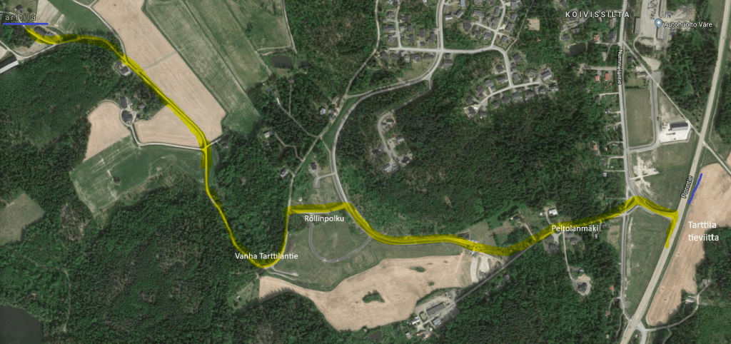 Ajo-ohjeet Porintieltä (Vt 2) (viitta Tarttilaan):